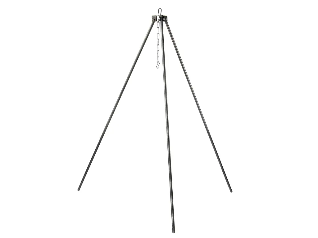 Зручна розладна тринога - практична і універсальна річ для приготування страв в казані. Вона має зручну конструкцію, що доволяє регулювати висоту і ширину розміщення трьох опорних ніжок та забезпечити оптимальне розташування посуду над багаттям. Зручна у транспортуванні, тринога легко складаться/розкладається і не потребує багато місця для зберігання. Надійна металева конструкція зроблена з міцного сплаву, що не деформується. Оснащена ціпком з гачком, що додатково дозволяє регулювати висоту підвісу посуду.
