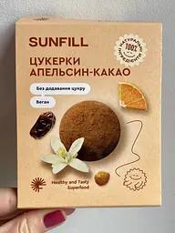 Цукерки Sunfill Апельсин-какао - це досконала гармонія солодкого і гіркого, що поєднує у собі натуральні інгредієнти, апельсинову свіжість і ніжну фінікову основу.