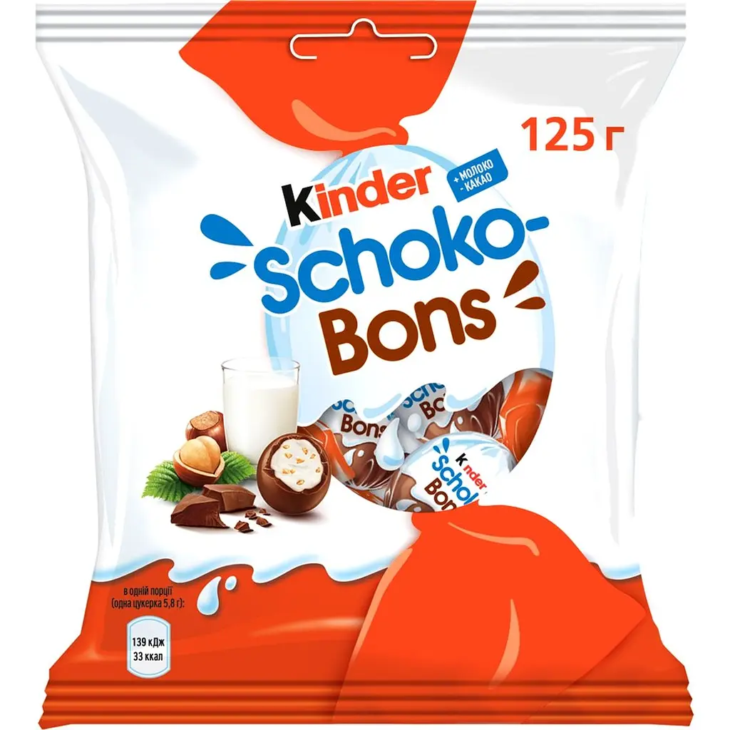 Цукерки Kinder Schoko-bons з молочно-горіховою начинкою підійдуть і для скромної, і для великої компанії.