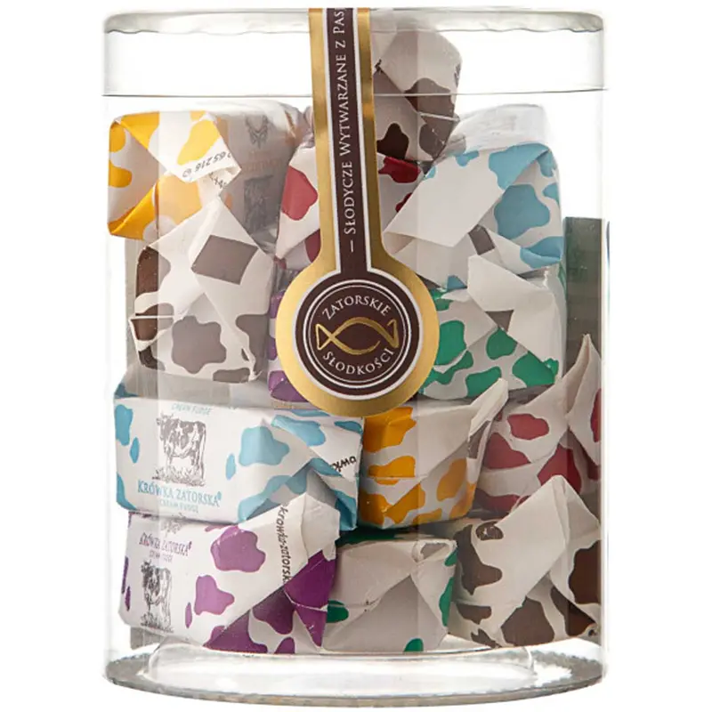 Цукерки Krowka Zatorska іриски вершкові асорті - це вишукані ласощі, які вражають своїм ніжним смаком і м'якою текстурою. Кожна цукерка являє собою шматочок вершкового ірису, приготованого за традиційним рецептом з використанням високоякісних інгредієнтів.
