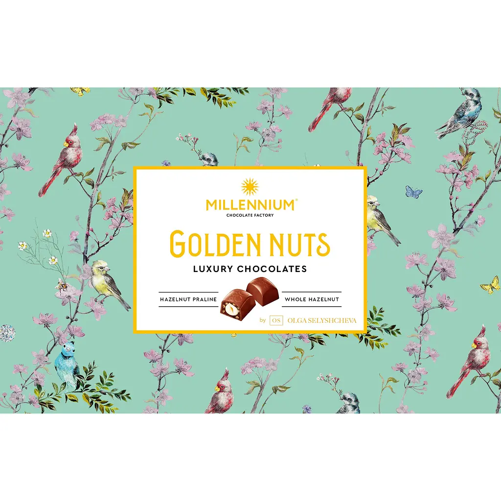 Цукерки Millennium GoldenNuts - це ідеальний вибір для тих, хто шукає поєднання ніжності і хрусткості у кожному шматочку. Висока якість інгредієнтів, вишуканий смак і стильна упаковка роблять ці цукерки неперевершеним смаковим досвідом і чудовим подарунком на будь-яку подію.