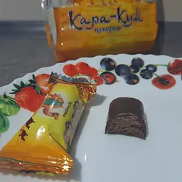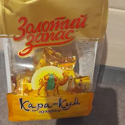 Ну такое... К конфетам "Кара-Кум", чьё название бесстыжим образом эксплуатируется, это изделие не имеет никакого отношения. Кроме названия. По составу - да и по вкусу - пальмовый жир, сахар и набор химикатов. Лучше уж вместо конфеты съесть чайную ложку сахара - меньше вреда. Впрочем, на упаковке честно написан состав. Ещё обещают 10-12 % какао - может быть оно и присутствует в гомеопатических дозах. Я понимаю, что это общая тенденция. Ну так уберите слова "золотой запас" и "Кара-Кум", а добавьте словосочетание "конфетоподобное изделие". Ах да. К красочной упаковке с золотой фольгой - никаких претензий. Тем более, что за неё тоже платит покупатель.