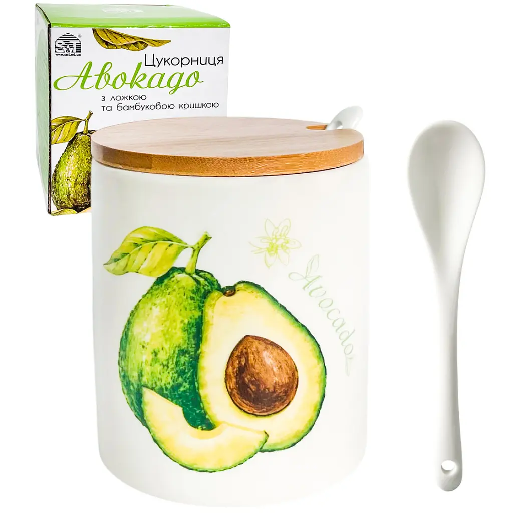 Цукорниця S&T Авокадо з ложкою та бамбуковою кришкою неодмінно прикрасить інтер'єр вашої кухні.