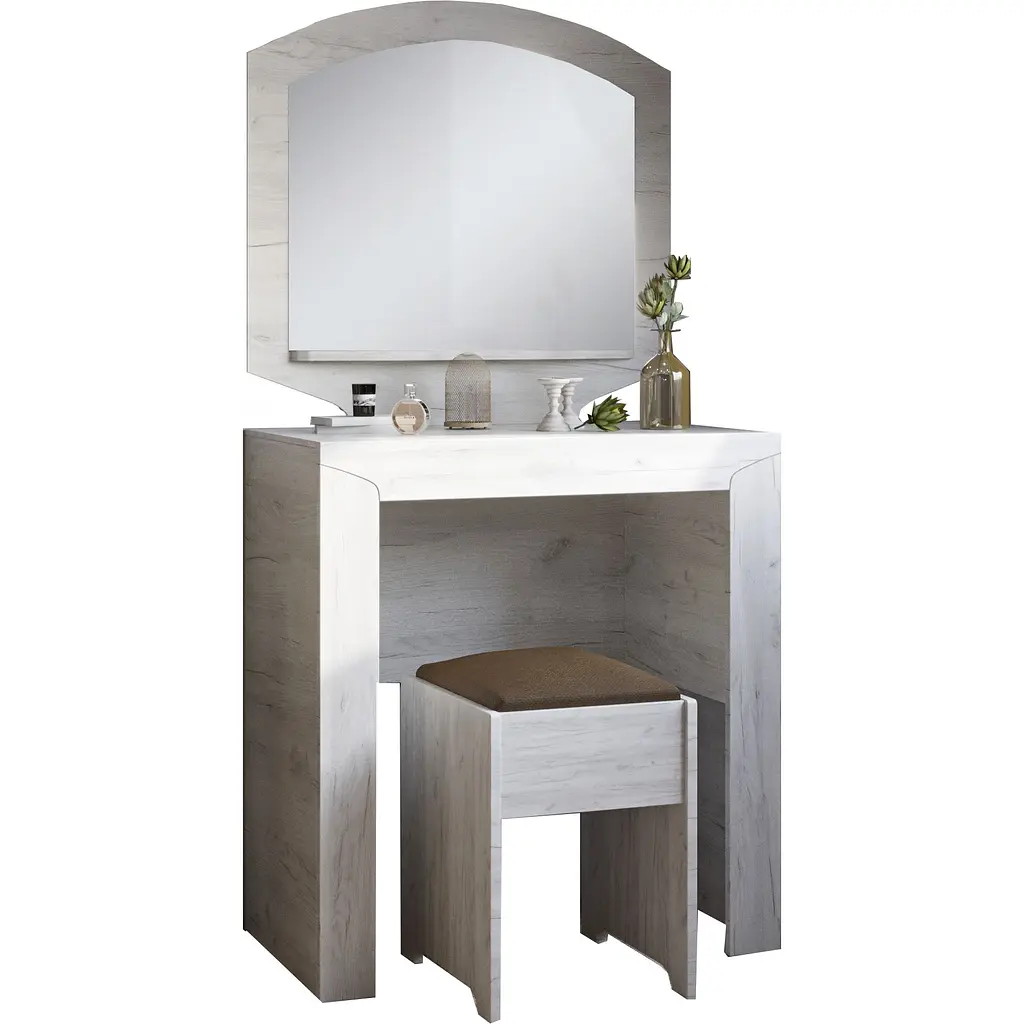 Протягом багатьох років трюмо вважається невід'ємною частиною спальної кімнати кожної жінки. Сучасна модель туалетного столика з пуфом в комплекті від фабрики Еверест зі стильної колекції Ліберті - ідеальне доповнення в затишному особистому куточку спальні.