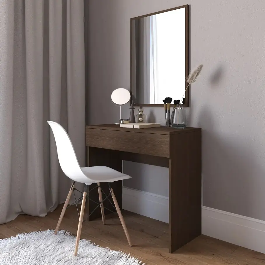 Туалетний столик VAYS D-3 - елегантне та компактне рішення для спальні або гардеробної з функціональною висувною шухлядою. Ідеально підходить для зберігання косметики, парфумів, прикрас та інших дрібниць. Завдяки розмірам 80×40×76 см, модель не займає багато місця, але забезпечує зручну робочу поверхню для макіяжу та догляду за собою.