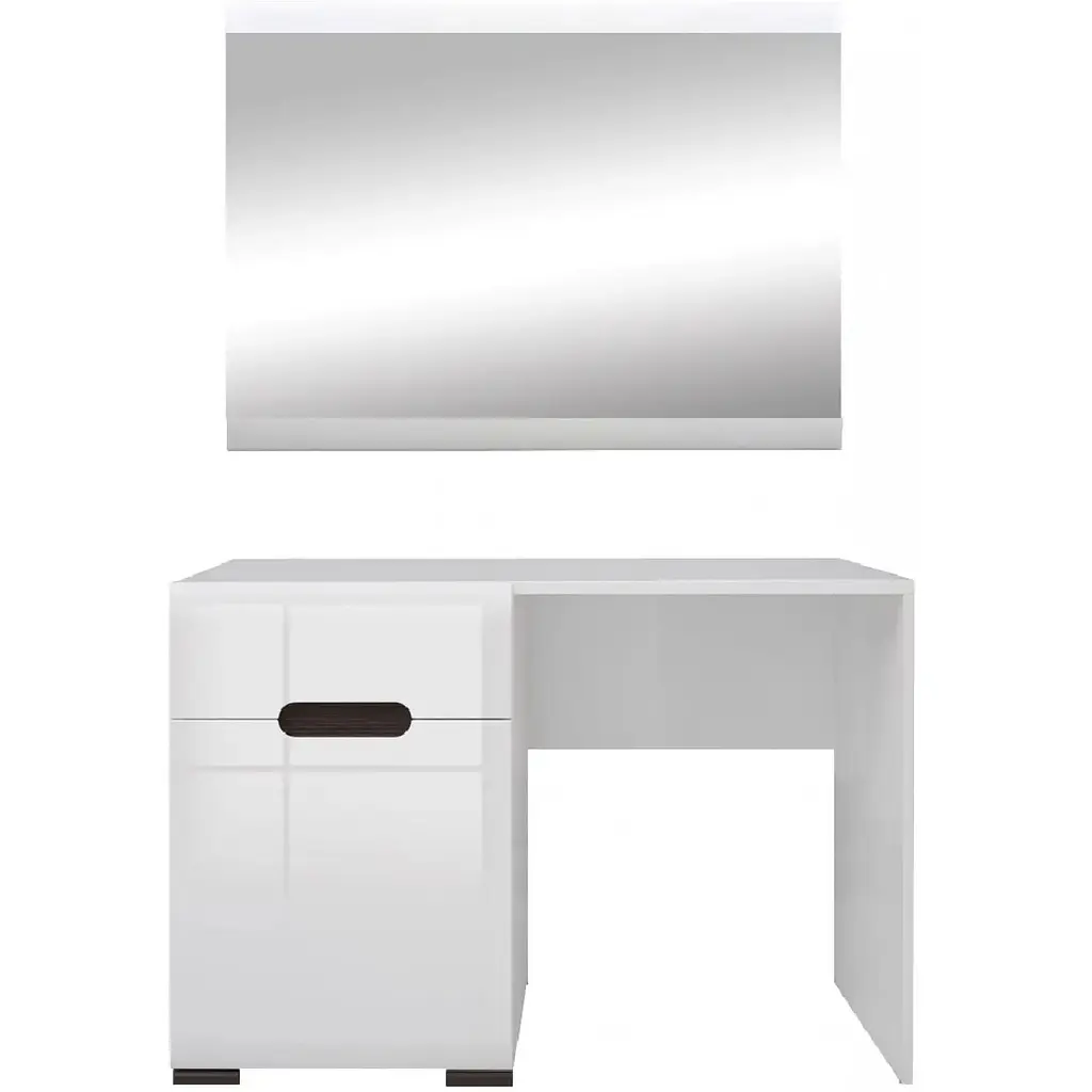 Представляємо вашій увазі туалетний столик з дзеркалом ВМК (BRW) N77777 від українського виробника ВМК (БРВ). Поєднання елегантного дизайну та функціональності робить цей набір ідеальним вибором для будь-якого сучасного приміщення. Набір виконаний в білому кольорі з ефектом глянцевого блиску. Меблі виготовлені з якісного матеріалу - корпус з ДСП, фасад з МДФ, що гарантує довговічність та надійність. Сучасний стиль ідеально впишеться в будь-який інтер'єр.