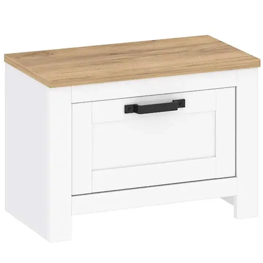 Фасади тумби виконані з пагонажного профілю МДФ товщиною 19 мм і покриті матовою плівкою ПВХ, надаючи їй стильний вигляд і легкість у догляді. Пластикові ручки чорного кольору додають тумбі для речей елегантності та зручності. Ця тумба - це організація та стиль в одному вигляді, і вона ідеально підходить для зберігання взуття, різних предметів та речей.