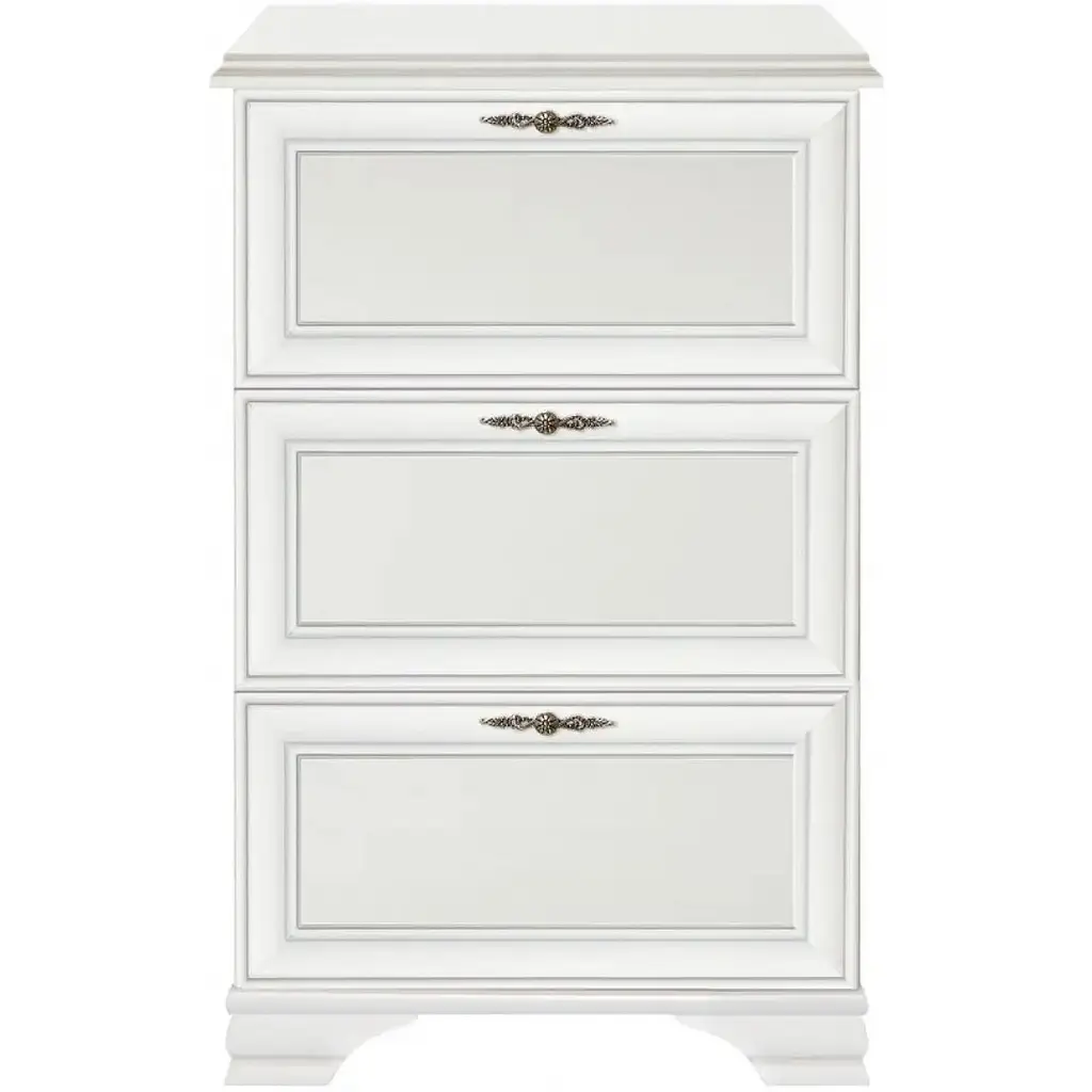 Тумба для взуття ВМК (БРВ) Кентуккі SFB3B Білий альпійський Стильна та функціональна тумба Кентукі SFB3B від українського виробника ВМК (БРВ) стане не лише практичною, а й дуже привабливою деталлю інтер'єру. Виготовлена із якісного матеріалу – ЛДСП для корпусу та МДФ для фасаду, довговічність та надійність цієї моделі гарантовані. Завдяки своєму естетичному білому альпійському кольору ця модель підійде під більшість інтер'єрів у сучасному стилі. Характеристики: Довжина – 80 см; Глибина – 19 см; Висота – 123 см. Тумба Кентукі SFB3B оснащена трьома дверима та компактними габаритами, що робить її зручною для використання у будь-якому приміщенні. Крім того, тумба оснащена фурнітурою у вигляді кульок повного висування, що забезпечує легкість та комфорт у використанні. Все це робить тумбу Кентуккі SFB3B ідеальним вибором для інтер'єру.