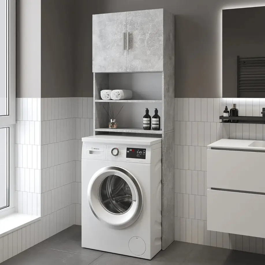 Тумба під пральну машину VAYS M-107 – це зручне та стильне рішення для вашої ванної кімнати. Конструкція спеціально розроблена для розміщення пральної машини та організації додаткового місця для зберігання. Верхня частина обладнана полицями та закритою шафкою, де можна зберігати рушники, засоби для прання, побутову хімію чи косметику.