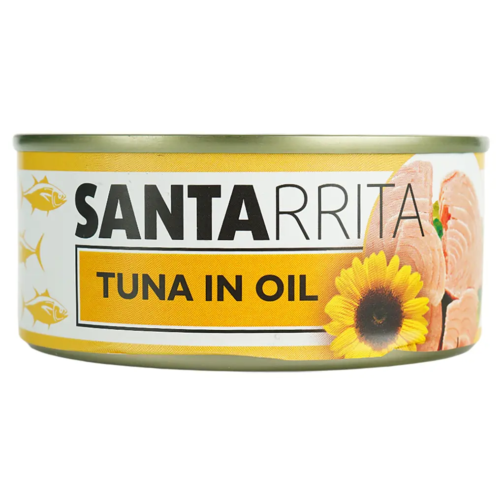 Тунець в олії Santarrita цілий 150 г - якісна рибна консерва за приємну ціну. В банці цілий шматок тунця в олії. Нічого зайвого - лише риба і олія. Консерва смачна і має приємний запах в міру солена. Рекомендую, як для салатів, так і в якості доповнення до гарніру. Ще й ціна по акції.