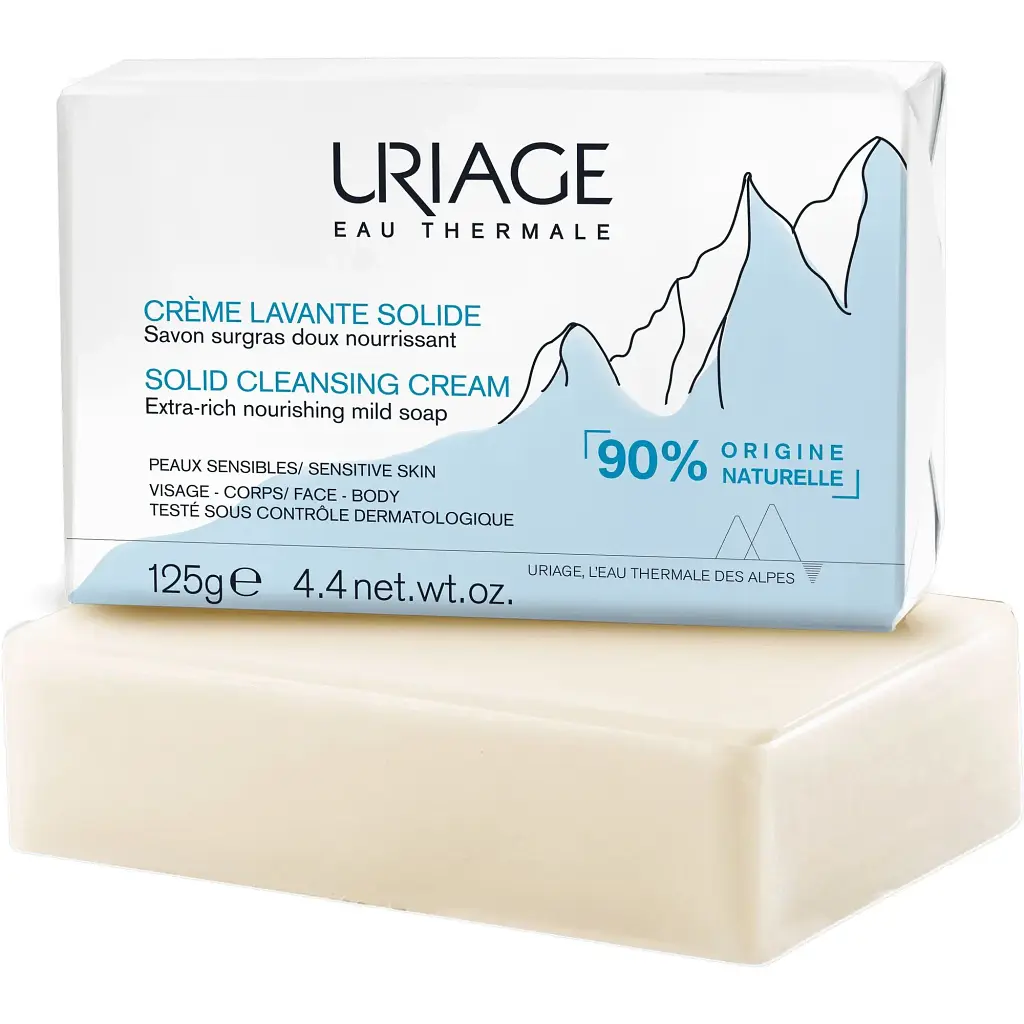 Твердий очищуючий крем Uriage - поживний, збагачений ліпідами засіб м'яко очищає шкіру, не порушуючи її захисні властивості.
