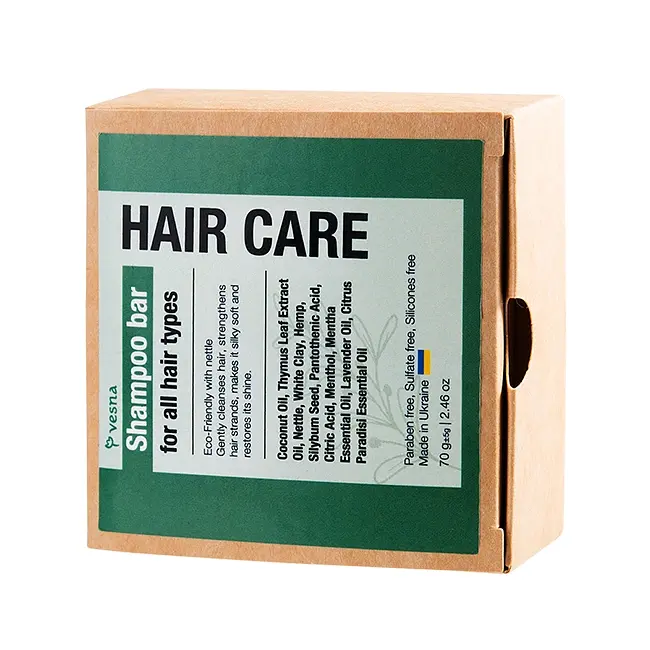 Натуральний твердий шампунь на рослинній сировині дбайливо очищає волосся від пилу, сальних накопичень, жиру та залишків косметики для укладання.