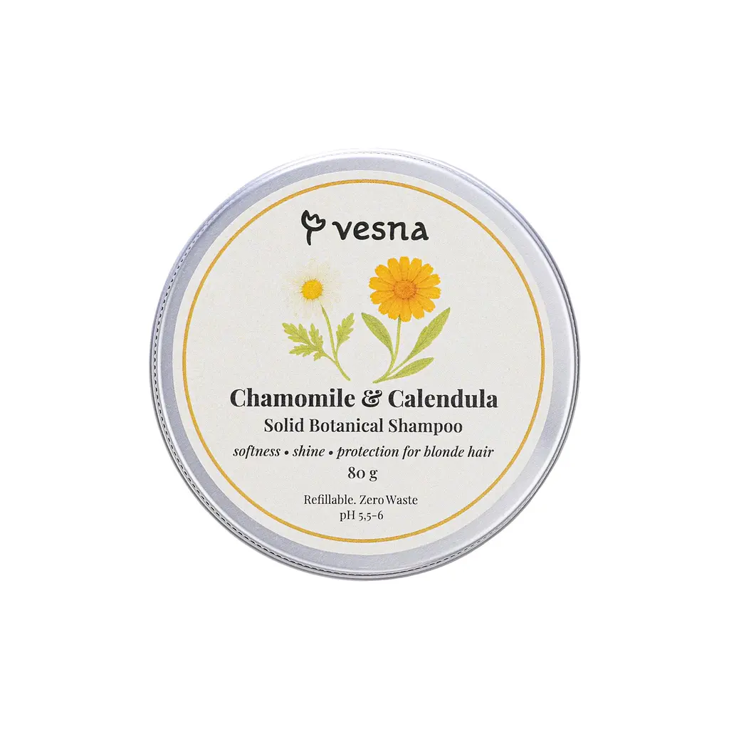 Твердий шампунь Ромашка та Календула – делікатний догляд для чутливої шкіри та світлого волосся.