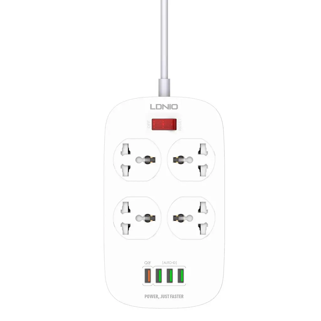 До кінця акції 160 днівМережевий подовжувач LDNIO SC4407 – це функціональний пристрій від LDNIO, призначений для одночасного живлення та зарядки кількох пристроїв. Оснащений 4 універсальними розетками (EU, US, UK стандарти) та 4 USB-портами: 3 порти USB-A (5В, 3.1A, Auto ID) і 1 порт USB-A QC3.0 (3.6-12В, 18W). Довжина кабелю – 2 м, виготовлений із міді (переріз 3х0.75 мм). Корпус із вогнетривкого ABS-пластику витримує температуру до 850°C, контакти з бронзи забезпечують зносостійкість. Максимальна потужність – 2500 Вт (250В, 10A). Розетки мають захисні шторки від дітей, кнопка вмикання витримує до 5000 натискань. Захищає від перевантажень, короткого замикання, імпульсних перешкод (LC-фільтр) і перепадів напруги (варистори).
