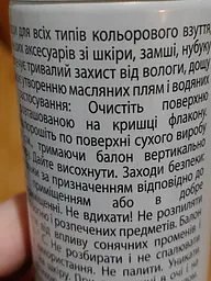 Цей засіб відповідає заявленим функціям виробника і гарно захищає взуття від зовнішніх факторів - захищає від дощу, снігу та появи соляних та масляних плям. Авжеж не нанотехнологія абсолютного захисту, але якщо ним не користуватись, то вплив переліченого буде в рази пагубнішим для взуття. Рекомендую до вживання.
