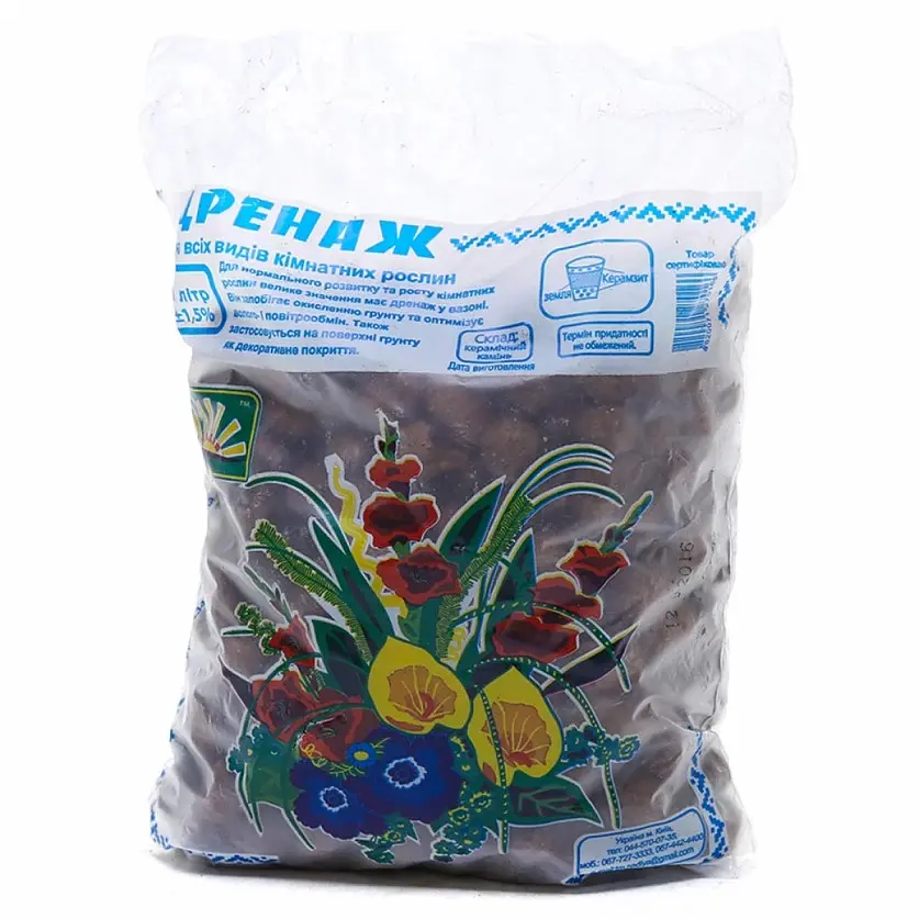 Дренаж керамзитовий ТМ Надія – натуральний матеріал з пористою структурою. Створює оптимальний мікроклімат для кореневої системи рослин. Не потребує стерилізації. Дуже добре пропускає воду, що запобігає псуванню коренів внаслідок перезволоження.