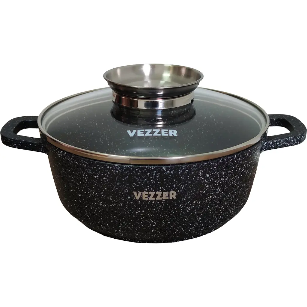 Каструля Vezzer - це надійний кухонний посуд, виготовлений із високоякісного литого алюмінію з антипригарним мармуровим покриттям, що забезпечує довговічність і комфорт у використанні.