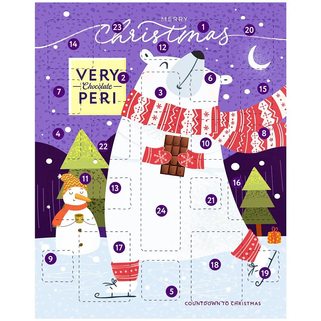 Шоколад "Millenium Very Peri" молочний з арахісом, родзинками, злаковими пластівцями та солоною карамеллю: цукор, какао-масло, арахіс смажений 17%, молоко сухе незбиране, молоко сухе знежирене, родзинки 5%, сироватка молочна суха, злакові пластівці 3% (крупа кукурудзяна, цукор, ячмінно-солодовий екстракт, сіль кухонна), какао терте, жир молочний, карамель солона 0.5% (цукор, вершки сухі, молоко сухе незбиране, сіль), емульгатор лецитин соєвий, сіль кухонна, ароматизатор ванілін.