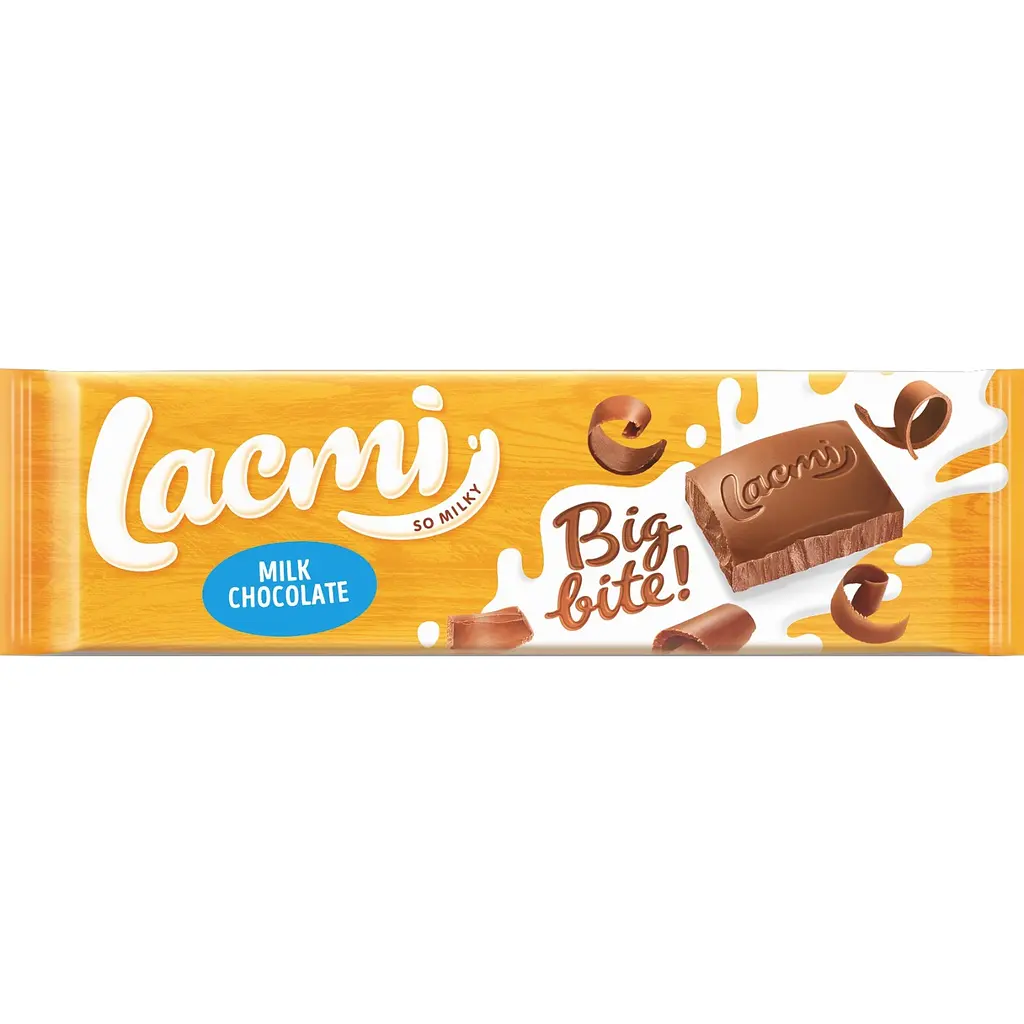 Шоколад Roshen Lacmi Big Bite молочный - це ніжний молочний шоколад із насиченим кремовим смаком. Він має мінімальний вміст какао-продуктів 30% та виготовлений із якісних інгредієнтів, що забезпечують його м'яку текстуру та приємний смак.