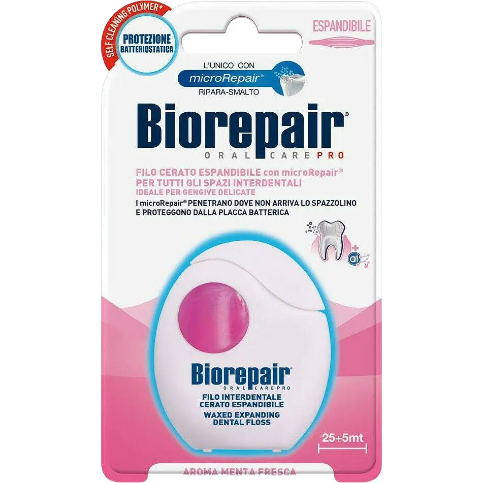 Розширювальна зубна нитка-флос Biorepair подбає про чистоту та здоров'я ротової порожнини.