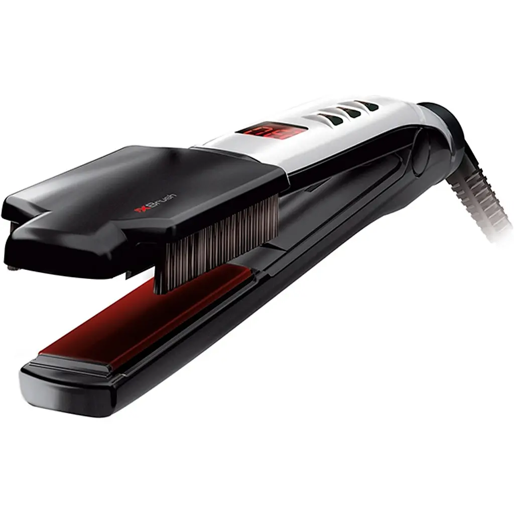 Варто відзначити, що модель укомплектована спеціальною двосторонньою насадкою з натуральною щетиною, яка допомагає розплутувати й розчісувати волосся безпосередньо в процесі випрямлення. Таким чином, посилюється антистатичний ефект, а волосся при впливі щетини й технологій випрямляча знайдуть блиск. Знімна насадка і при бажанні її можна зняти або одягнути.
