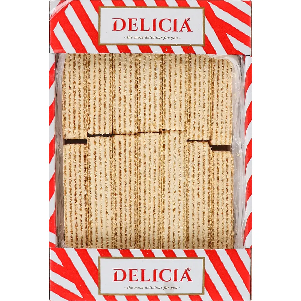 Вафлі Delicia Ритм зі смаком пломбіру - це ідеальний вибір для тих, хто прагне знайти досконалість у простоті. Хрусткі вафельки та молочний крем створюють гармонійне поєднання, яке здатне подарувати справжнє задоволення від кожного шматочка.
