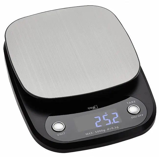 Виробник: TFA Dostmann GmbH & Co.KG, Germany Особливості:РК-дисплей з підсвічуваннямПоверхня з нержавіючої сталіФункція тариФункція автоматичного вимкненняПідставка, яка не ковзаєтьсяЗмінюється одиниця вимірювання: г => мл => фунт: унція => унція (рідина)Крок вимірювання: 0.1 г Цифри після коми теж мають для вас значення? Цифрові кухонні ваги Apple Pie пропонують правильну підтримку, тому що ви можете використовувати їх для зважування з точністю до 0.1 г. Отже, ви нарешті можете точно зважувати трави та спеції.Ви можете легко прочитати точну вагу на РК-дисплеї з підсвічуванням. Завдяки функції зважування тари на цих кухонних вагах враховується лише вміст. Щоб використати цю функцію, помістіть порожній контейнер на платформу для зважування. Тільки після цього увімкніть пристрій. Таким чином, цифрові кухонні ваги Apple Pie зважують лише інгредієнти. Кнопка UNIT забезпечує гнучкість вибору одиниць вимірювання. Просто натисніть на потрібну одиницю за необхідності. Будь то г, мл, фунт унції або унція (рідина), Apple Pie справляється з німецькими та американськими вагами. Ваги зважують рідини так само надійно, як і тверді інгредієнти.Вам не потрібно думати про те, щоб вимкнути їх, тому що ваги вимикаються автоматично. І роблять вони це вже за дві хвилини. Так що батарейок точно вистачить надовго.Отже, що робить цифрові кухонні ваги Apple Pie такими особливими? Вони є перфекціоністами, коли справа доходить до точності. Вони прості в управлінні та мають гарний чарівний дизайн. Чорний пластик і поверхня для зважування з нержавіючої сталі, що легко очищається, у поєднанні з образом позачасової елегантності.Звичайно, стільки функціональної краси потребує надійної підставки. Ось чому гумові накладки запобігають ковзанню. Не дивно, що вам хочеться з'їсти яблучний пиріг. Якісний продукт від TFA Dostmann GmbH & Co.KG, Germany