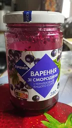 Варення «Премія» зі смородини (380 г) — якісний продукт середнього цінового сегмента. Натуральне варення без виражених хімічних присмаків. Виготовлене за традиційною рецептурою. Має насичений ягідний смак та помірну солодкість. Це стерилізоване варення в скляній банці об'ємом 380 г з кришкою-закруткою, що зручно для зберігання. Воно має середню густину, що дозволяє використовувати його як додаток до млинців, сирників або для просочування тортів. Брав по акшії. Тому цей варіант є одним із найкращих у співвідношенні ціна-якість.Термін зберігання - до листопада 2026 року.Рекомендую.