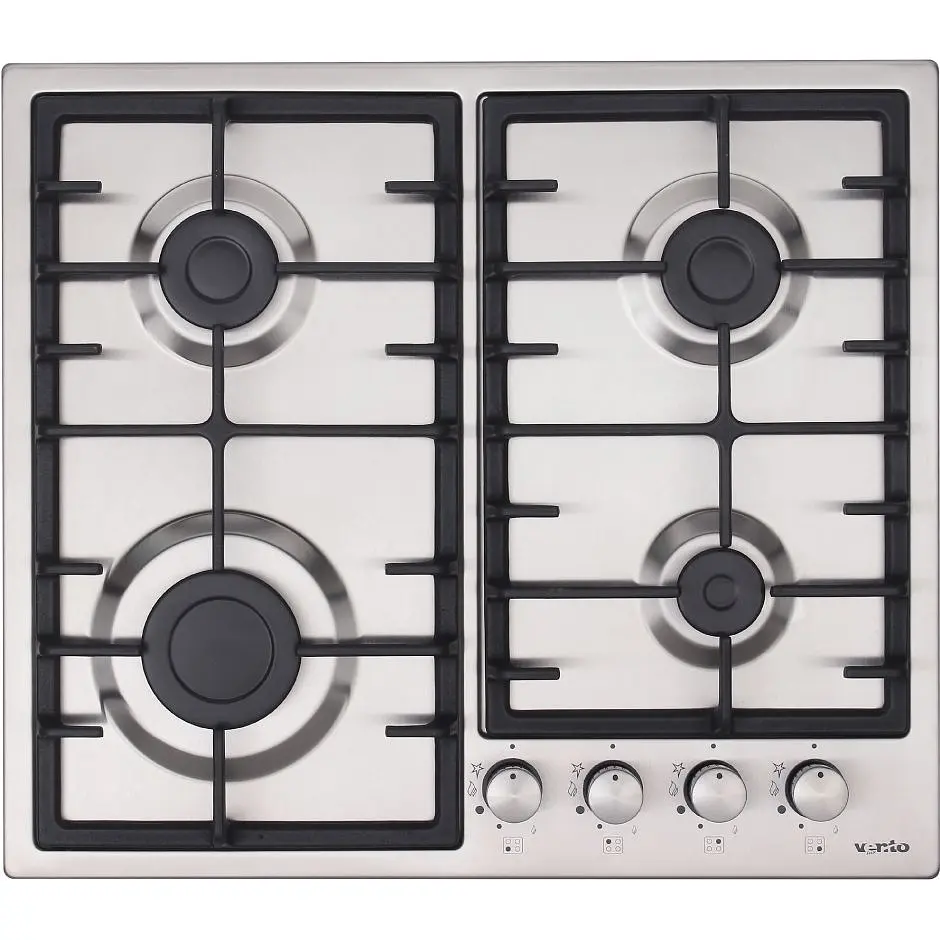 Варильна поверхня HSF640-D3 CS (X) Нова поверхня HSF640-D3 CS (X) від ТМ Вентолюкс органічно впишеться в кухню в сучасному стилі. Ця газова незалежна поверхня володіє багатьма функціональними перевагами перед іншими моделями. Це і наявність чавунних решіток, і функція газ-контролю, і зручні ергономічні ручки, і можливість підключення до балонного газу (жиклери для зрідженого газу не входять в стандартну комплектацію, але при необхідності доукомплектовуються безкоштовно). Переваги варильної поверхні HSF640-D3 CS (X): Надійні чавунні решітки-утримувачі витримають навіть найважчі каструлі. З функцією газ-контролю Ви можете бути впевнені в безпеці своєї сім'ї. Якщо, наприклад, молоко, яке витікало, погасило полум'я - газ автоматично перестане подаватися. Якісні італійські конфорки SABAF не тільки надійні та економічні, а й красиві. Найбільш часто використовувані конфорки - велика і маленька під турку для кави - розташовані для більшої зручності відразу за ручками управління. Стандартна для більшості кухонь ширина 60 см і нейтральний колір «нержавіючої сталі» полегшить Вам установку і підбір додаткової техніки. Купуючи газову варильну поверхню HSF640-D3 CS (X) і до неї духову шафу ТМ Вентолюкс, Ви отримаєте гарантовану знижку.