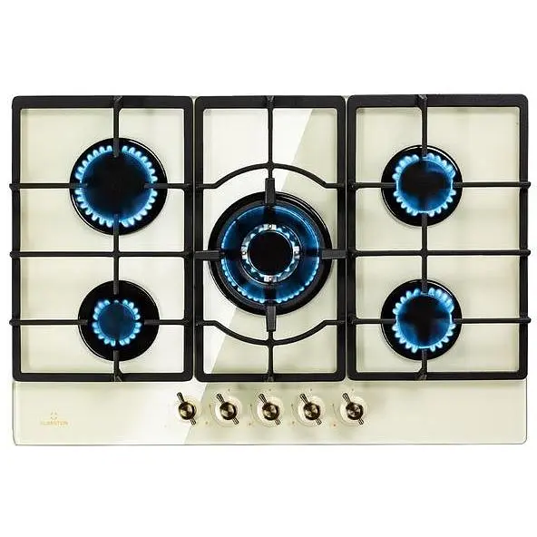 На просторій газовій плиті Klarstein Victoria 5 є п’ять високоякісних конфорок Sabaf , кожна потужністю 3,6 кВт, 3,0 кВт і 1 кВт, а також двічі по 1,75 кВт. Завдяки різним розмірам конфорок Victoria 5 підходить для будь-якої їжі, яку тільки можна собі уявити - конфорки рівномірно розподіляють тепло посередині та по краях посуду, тому все готується легко. Управління абсолютно інтуїтивно зрозумілим завдяки зрозумілим символам на великих кнопках ретро-дизайну; подачу тепла можна регулювати безпосередньо під час процесу приготування. Ви запалюєте полум'я за допомогою SnapJetIgnition , тому додатковий вогонь не потрібен. Три знімних хреста з міцного чавуну лягають на полум'я і не перекидаються. Варильна поверхня має загартоване, просте у догляді склокерамічне покриття, яке не лише гарно виглядає, але й особливо легко миється.