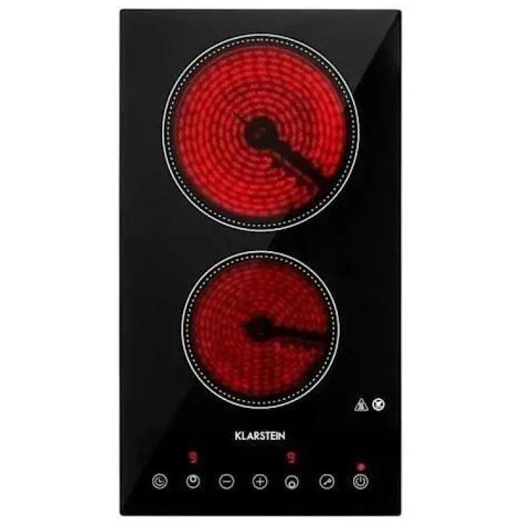 Галогенна варильна поверхня Klarstein управляється за допомогою вбудованого сенсорного поля зі світлодіодним дисплеєм. Крім температури, для кожної конфорки можна запрограмувати таймер з кроком за хвилину, який або вимикає конфорку після встановленого часу, або дає звуковий сигнал.