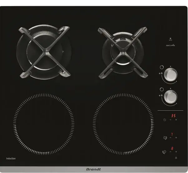 Комбінована варильна поверхня BRANDT BPI6414BM від авторитетного французького бренду має елегантний дизайн з чорної склокераміки та поєднує в собі дві електричні індукційні та дві газові конфорки. Модель відмінно доповнить простір будь-якої кухні. Поверхня має комбіноване керування, а газові конфорки оснащені системою безпеки, яка автоматично припиняє подачу газу в разі випадкового гасіння полум’я, попереджаючи тим самим ризик потрапляння газу в приміщення.