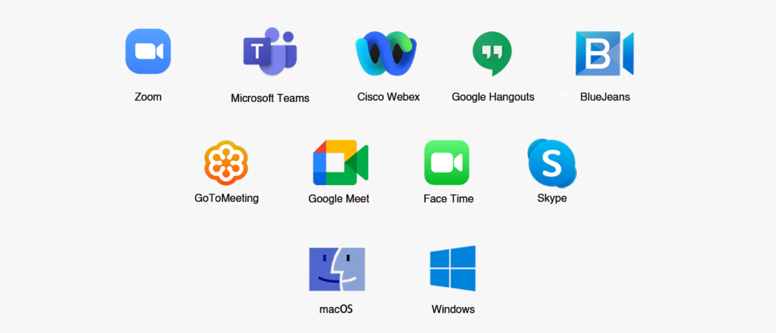 eMeet сумісна з усіма популярними відеоплатформами: Zoom, Webex, Microsoft Teams, Skype та багатьма іншими.