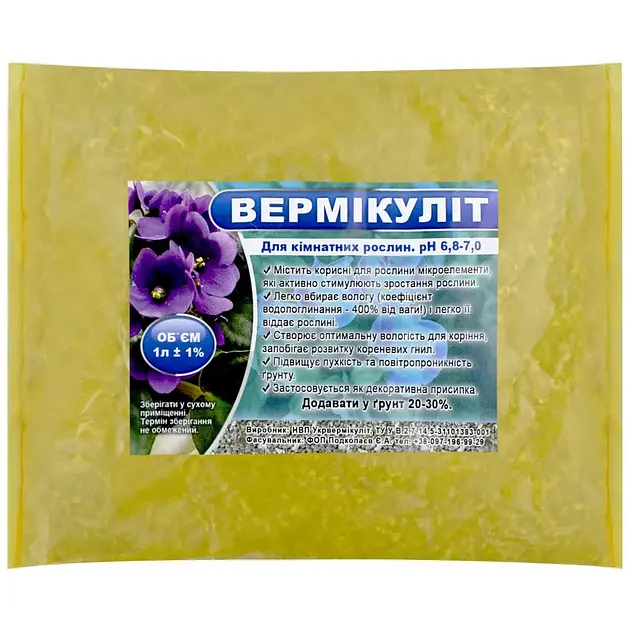 Застосування: Залежно від виду рослин і ґрунту вермикуліт додають від 10% до 30% обсягу земельної суміші.