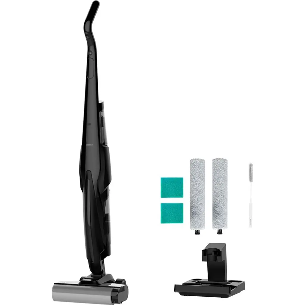 Deerma VX100 ULTRA подає чисту воду під час роботи для промивання обертової щітки і одночасно збирає брудну воду в окремий резервуар об'ємом 550 мл. Чиста вода зберігається в окремому контейнері на 650 мл, що забезпечує тривале прибирання без дозаправки. Завдяки цій системі поверхня підлоги завжди залишається чистою, а сама щітка не накопичує забруднення під час роботи.