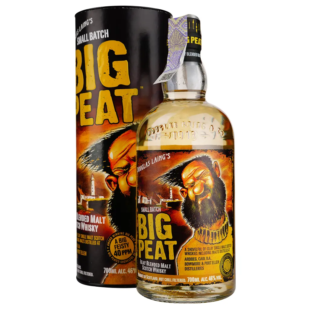 "Big Peat" - чудовий купажований солодовий віскі, до складу якого входять лише віскі з острова Айла. У бленді є віскі "Caol Ila", що додають солодкість, віскі "Bowmore", це створює ідеальний баланс, віскі "Ardbeg", що наповнює купаж лікарськими нотками, та елегантний "Port Ellen". Фред Леїнг, один з власників компанії Douglas Laing and Co, каже, що, в купажі є і пара секретів, але навіть після кількох порцій випивки він не буде ділитися цією інформацією, і тому вона залишається найсуворішим секретом! В "Big Peat" не додається колер, він не проходить холодну фільтрацію та розливається у пляшки при міцності в 46%, що призводить до природного маслянистого смаку.