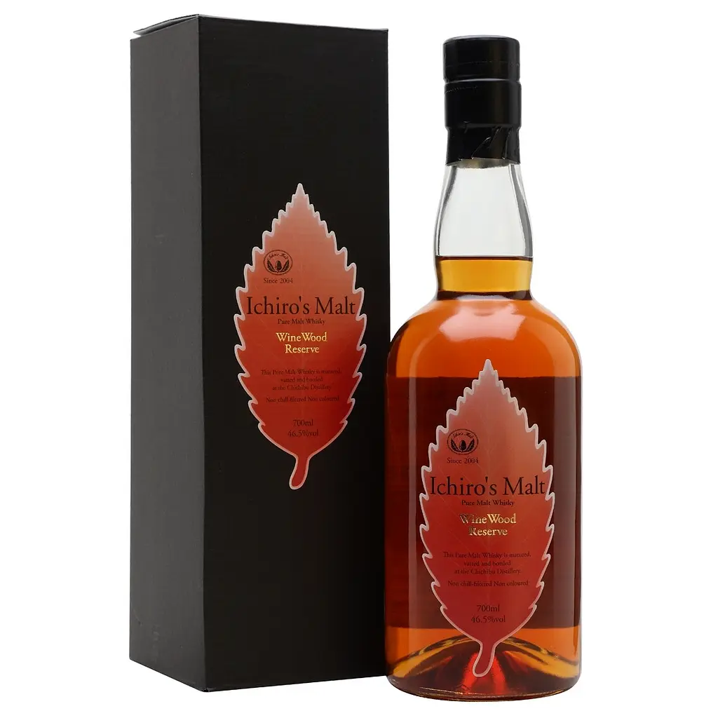 Віскі Ichiro's (Ічіро'с) Wine Wood Reserve Blended Malt Japanese Whisky - купажований японський віскі, у виробництві якого використовуються спирти з винокурні Chichibu. Витриманий у бочках з-під червоного вина та шотландського віскі.