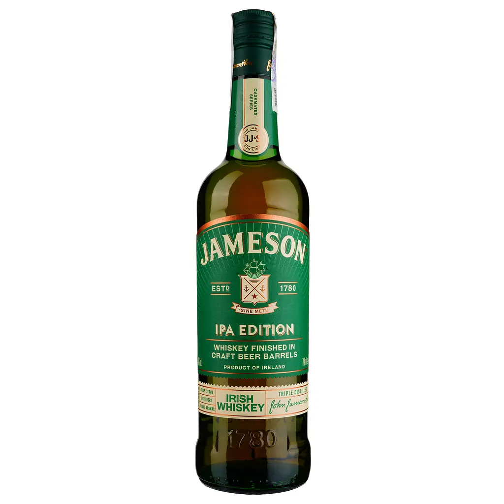 Jameson Caskmates IPA Edition – це унікальний експеримент, створений для цінителів крафтового пива. Окрім потрійної дистиляції, віскі проходить фінішну витримку в бочках з-під Ірландського світлого елю. Класичний Jameson набув яскравих хмелевих нот, цитрусової свіжості та легкого трав’янистого відтінку, що гармонійно доповнює м’яку текстуру.