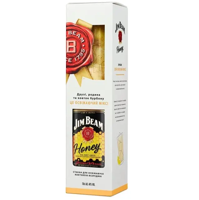 Лікер Jim Beam (Джим Бім) Honey новий продукт, що зберіг традиційні для лінійки контури стилю. Віскі поєднує в собі бурбон 4-річної витримки та натуральний мед. Ретельно відібрані інгредієнти, дбайлива обробка та витримка у нових бочках із білого дуба надають напою м'якість та багатство, доведені до досконалості тонами свіжого меду.