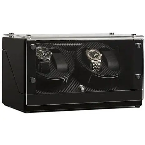 Корпус ручної роботи покритий кількома шарами чорного, високополірованого рояльного лаку. Велике безрамкове акрилове скляне вікно забезпечує безперешкодний огляд внутрішньої частини, де ніжний вигляд вуглецевого волокна стримано та елегантно демонструє годинники всередині.