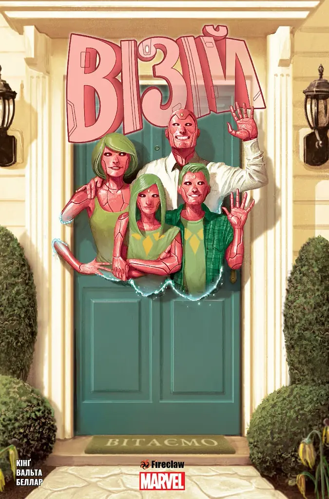 Візій хоче бути людиною, а що є більш людським, ніж сім'я? Тож він повертається до старту - до лабораторії, де Альтрон створив його та перетворив на зброю. До місця, де він вперше повстав проти своєї долі й уявив, що він міг би бути більшим - міг бути людиною. Там він будує їх. Дружину Вірджинію. Двох близнюків-підлітків Вів та Він. Вони схожі на нього. Вони мають його сили. Вони поділяють його найвеличніші амбіції - чи одержимість - невблаганну потребу бути звичайними. Дивіться на Візія! Вони - сусіди навпроти, які мають силу вбити нас усіх. Що могло піти не так? Штучні серця будуть розбиті, тіла не поховають, правда не залишиться прихованою, а Візій ніколи не буде таким, як був колись.