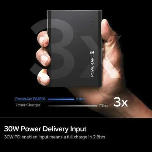 Надзвичайно швидке заряджання в портативному пристрої PowerArc ArcPack. Заряджайте телефон на екстремальних швидкостях до 30 Вт через порт USB-C. тепер ваш iPhone може заряджатися до 50% від 0% всього за 30 хвилин (потрібно окремий кабель USB C до Lightning). Ємність 15 000 мА·год - це те, що потрібно, позаяк зарядний пристрій може заряджати смартфони на повну потужність кілька разів, а ноутбуки або планшети - на повну потужність один або два рази. Швидкість заряджання чудова, оскільки є два порти подавання живлення потужністю 30 Вт і порт швидкого заряджання. Максимальна вихідна потужність 60 Вт гарантує, що ви зможете використовувати порт Power Delivery з максимальною потужністю без компромісів під час заряджання інших пристроїв. Завдяки двом портам подавання живлення потужністю 30 Вт, порту швидкого заряджання та достатньої потужності це портативний зарядний пристрій PowerArc буде надійним для більшості користувачів ноутбуків і смартфонів PD щодня.