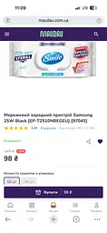Зараз чомусь на сайті показує назву товару: "мережевий зарядний пристрій Samsung 25W Black" 🫣😅 Купувала серветки антибактеріальні по 99 гривень за упаковку. Дуже шкода, що саме ці серветки в індивідуальних сашЕ зняли з виробництва. Якість серветок гарна. Запах діти дуже сильно не люблять, коли витираю руки десь в дорозі або на вулиці перед перекусом. Але відчуття свіжості та чистих рук відразу. І по дому теж використовую.