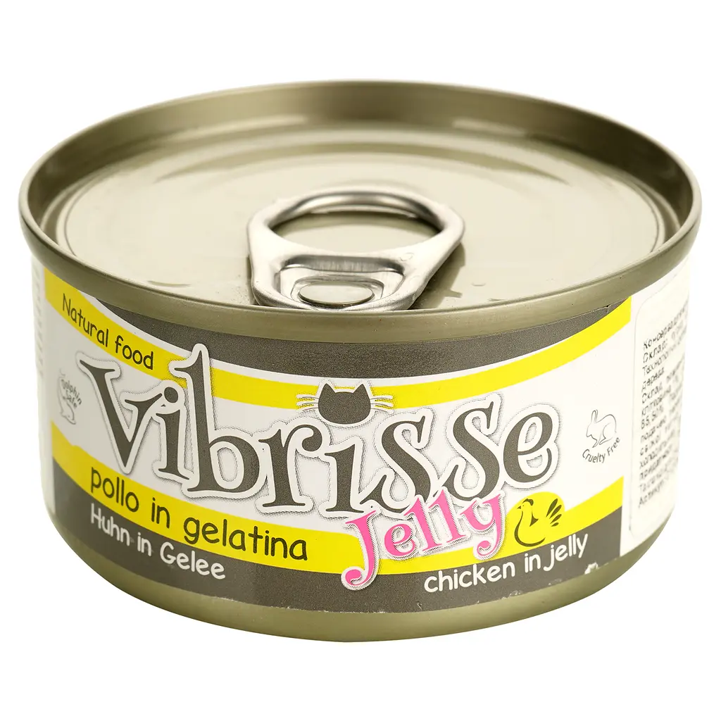 Консервований корм для дорослих котів Vibrisse Jelly - апетитна парова страва з добірних інгредієнтів, приготованих у власному соку за унікальною італійською рецептурою. Завдяки дбайливому процесу приготування шляхом пропарювання, інгредієнти корму зберігають максимум корисних властивостей і природний смак, що особливо важливо для вибагливих вихованців.
