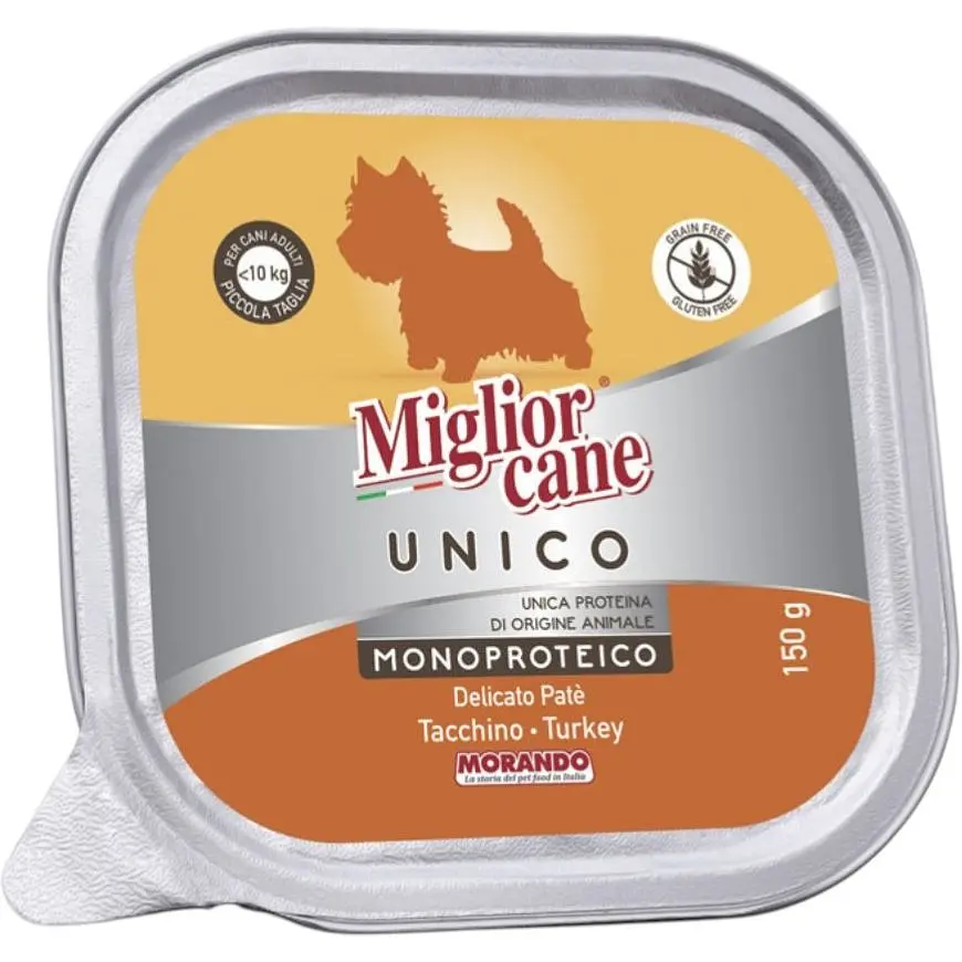 Лінійка Migliorcane Unico є флагманською та найсучаснішою серією Morando, у якій виробник зосередив беззернові й монопротеїнові рецептури з підвищеними вимогами до якості інгредієнтів. Консерви виготовляються в Італії з дотриманням стандартів контролю якості ЄС та без використання штучних барвників і консервантів.