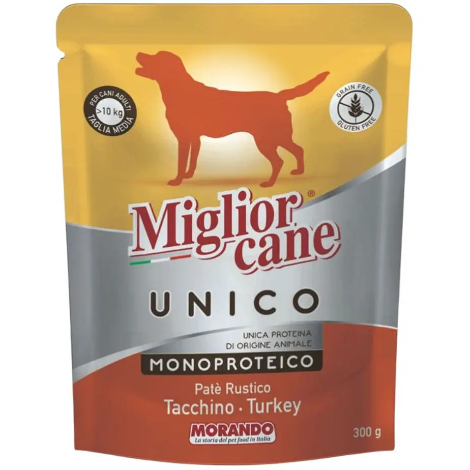 Лінійка Migliorcane Unico є флагманською та найсучаснішою серією Morando, у якій виробник зосередив беззернові й монопротеїнові рецептури з підвищеними вимогами до якості інгредієнтів. Консерви виготовляються в Італії з дотриманням стандартів контролю якості ЄС та без використання штучних барвників і консервантів.