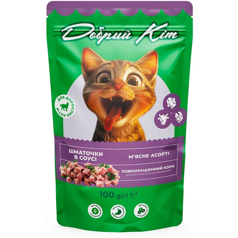 Вологий корм Добрий Кіт для дорослих котів - це збалансоване харчування українського виробництва, створене для забезпечення улюбленця всіма необхідними поживними речовинами. Рецептура розроблена з урахуванням фізіологічних потреб зрілих тварин, щоб підтримувати їхню активність та здоров’я щодня. Шматочки у соковитому соусі мають привабливий аромат та смак, який подобається домашнім хижакам. Завдяки оптимальному поєднанню білків, жирів та вітамінів, цей раціон допомагає підтримувати ідеальну форму та забезпечує легке засвоєння компонентів без зайвого навантаження на систему травлення.