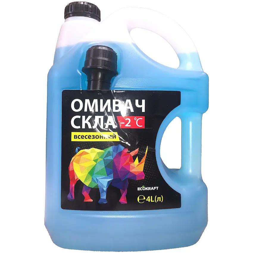 Всесезонний омивач скла EcoKraft ефективно видаляє жирні плями, дорожній пил та інші забруднення з лобового скла і оптичних приладів автомобіля, не залишаючи розводів.