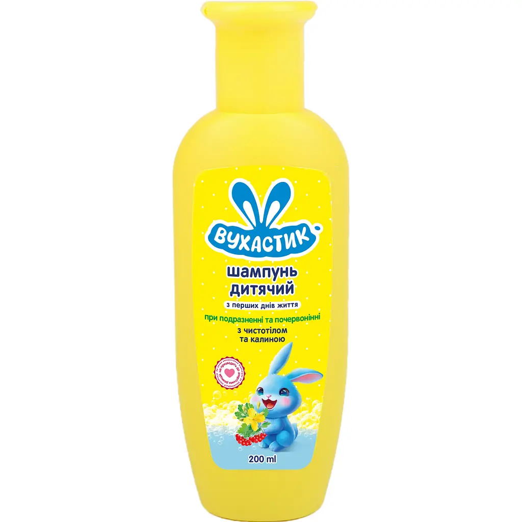 Дитячий шампунь Вухастик з чистотілом та калиною сприяє зволоженню шкіри, зміцненню та покращенню стану волосся. Шампунь легко наноситься і змивається, Створює пишну, м'яку, приємну для шкіри пінку. Чистотіл добре очищує та заспокоює шкіру. Підходить при подразненнях і почервоніннях.