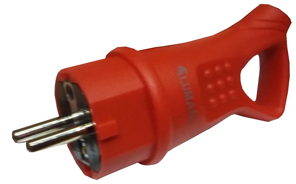 Вилка каучук кутова з кільцем із заземленням Lumano Arctic IP44 16A червона (RED) (18617)